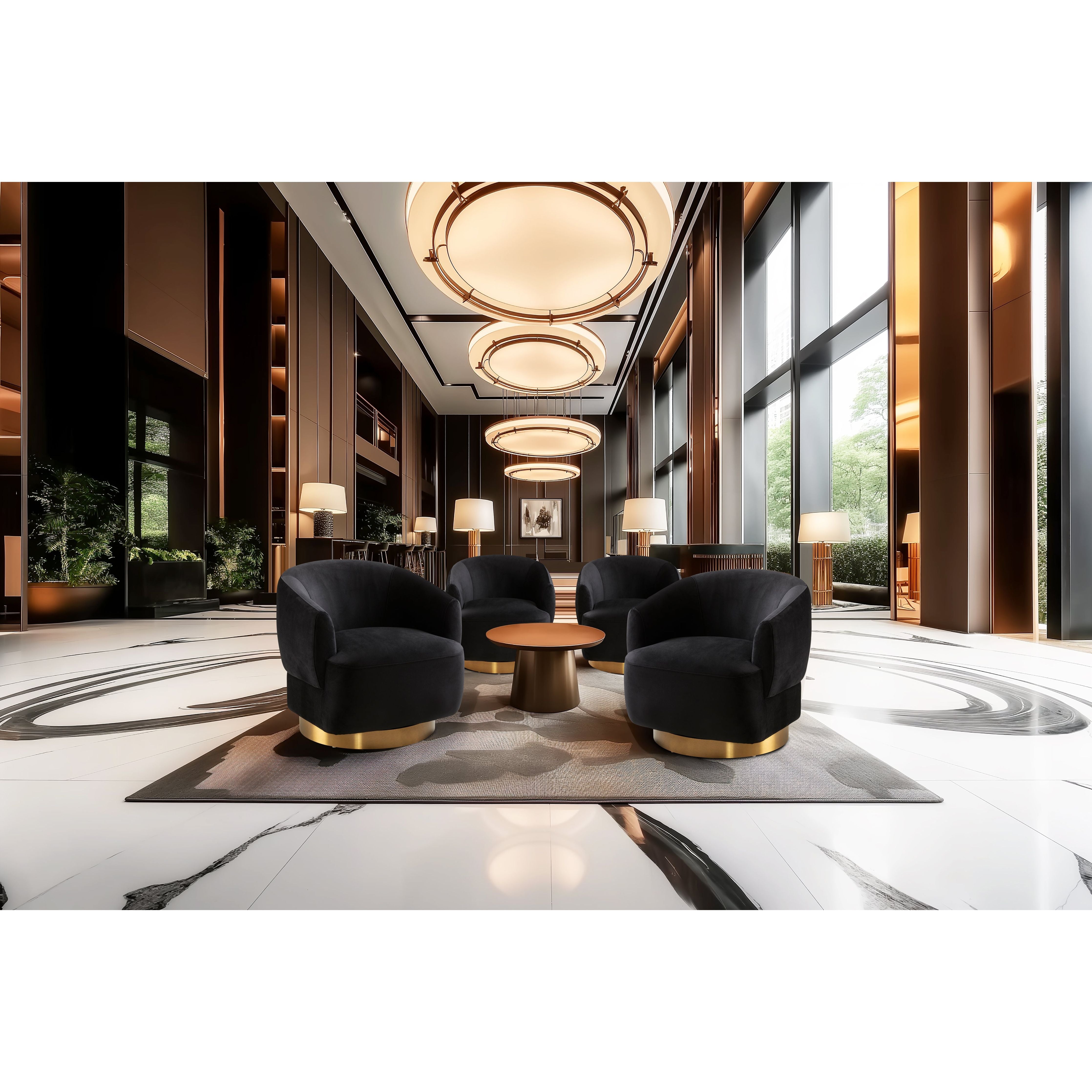 Infuse your space with daring luxury by adding this strikingly profiled piece, which was showcased at one of the hottest spots in town! The Liam Accent Chair has been upholstered in black velvet, which is timeless. This gorgeous black velvet accent chair sits on top of a luxe matte gold base, resulting in a seductive combination of glam-meets-modern aesthetic.