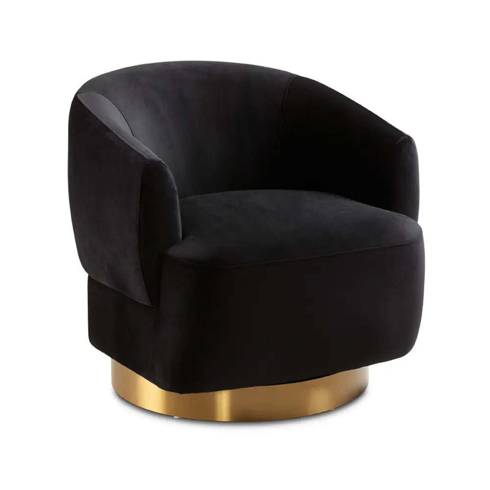 Liam Black Velvet Accent Chair – Customizable Matte Gold Base