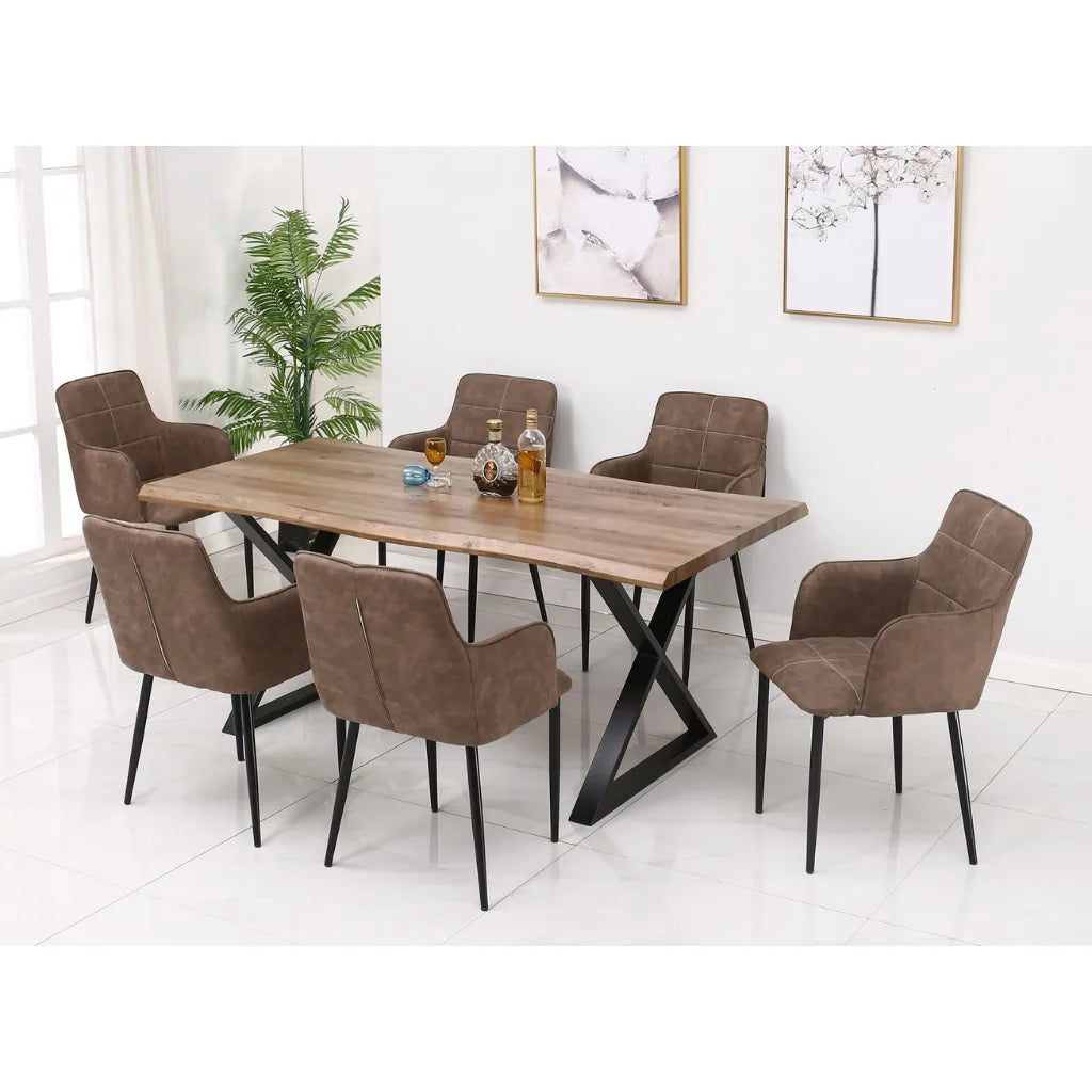 Home Live-Edge Dining Set for Six – Brown PU Chairs & Wood Table
