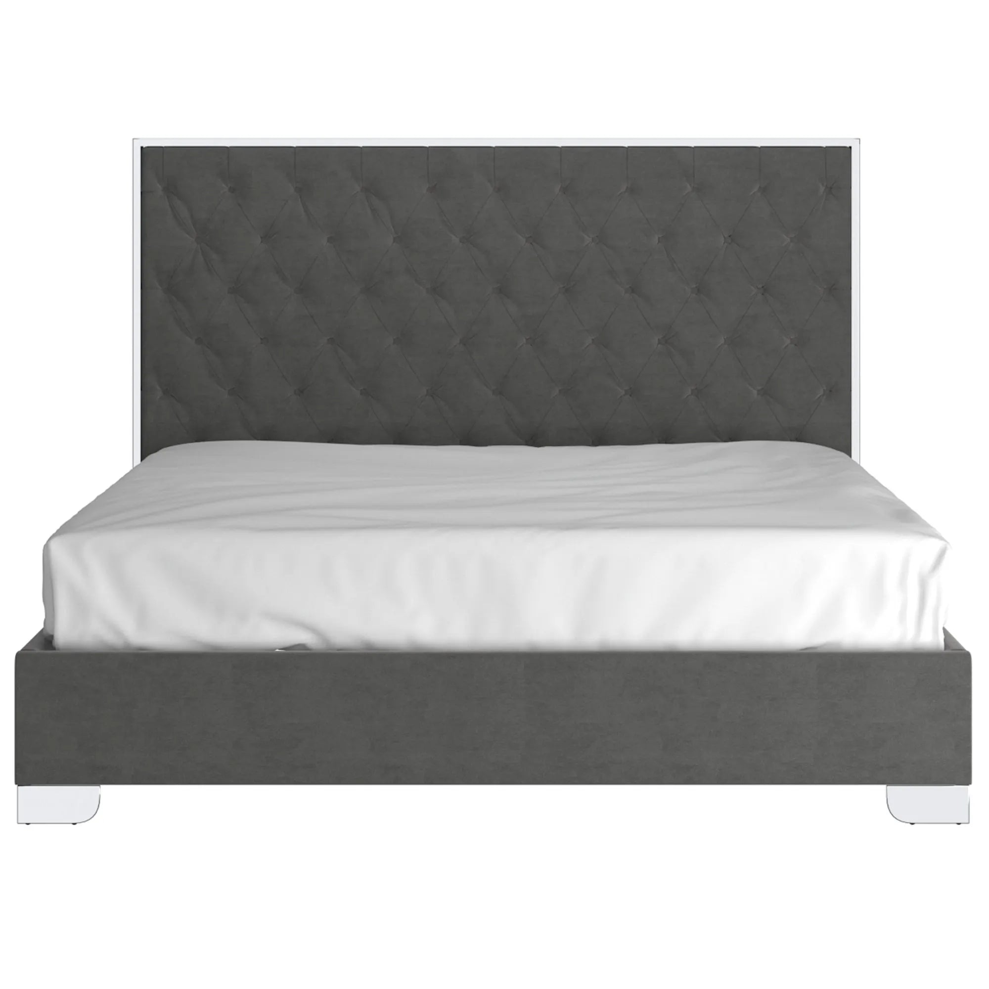 Stand out in the crowd with the Lucille 78" Grey Velvet King Bed - A perfect fusion of unique, casual style and modern design. Wrapped in ultra-soft velvet and featuring diamond-patterned button tufting, this bed brings five-star luxury to your bedroom.