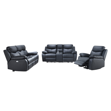 Black leather reclining sofa set
