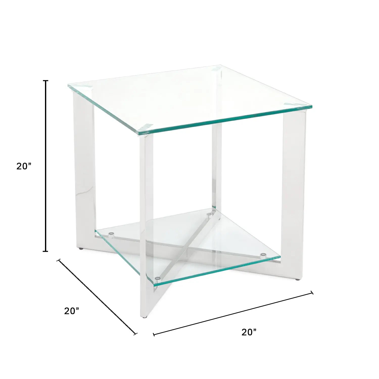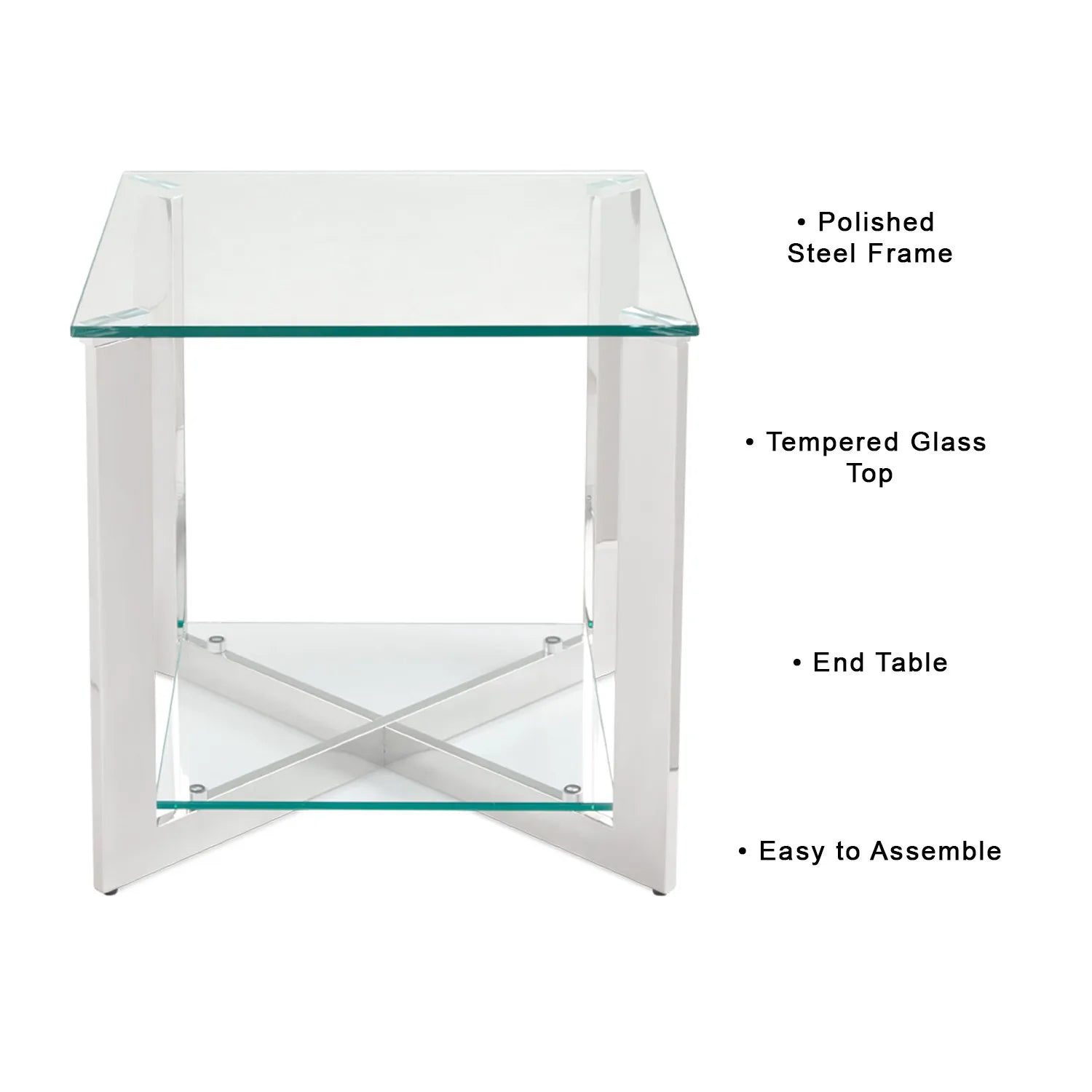 Maison Tempered Glass Top End Table with Stainless Steel Frame