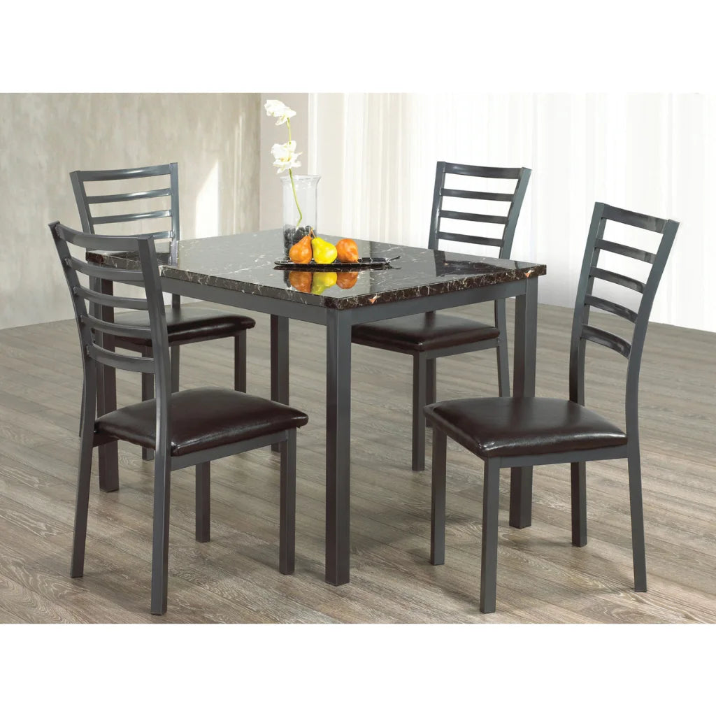The matching chairs feature sleek grey metal legs and plush black PU leather seats. They’re not just stylish—they’re comfortable enough to make conversation last long after the plates are cleared. Whether you choose the 5-piece for smaller gatherings or the 7-piece for bigger dinners, you’re investing in a set designed to handle years of family meals, holiday feasts, and casual coffee chats.