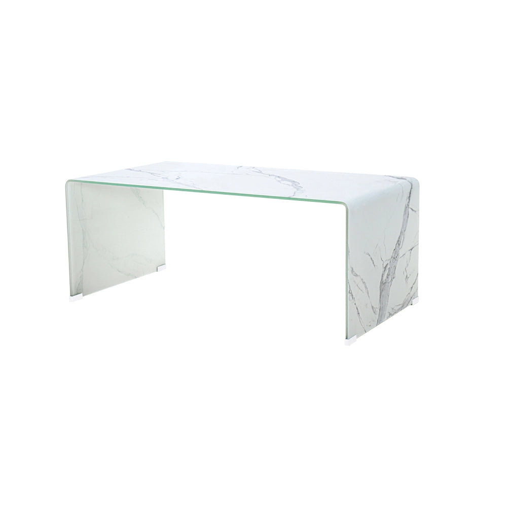Marble Look Coffee Table – Space-Saving Bent Glass Design