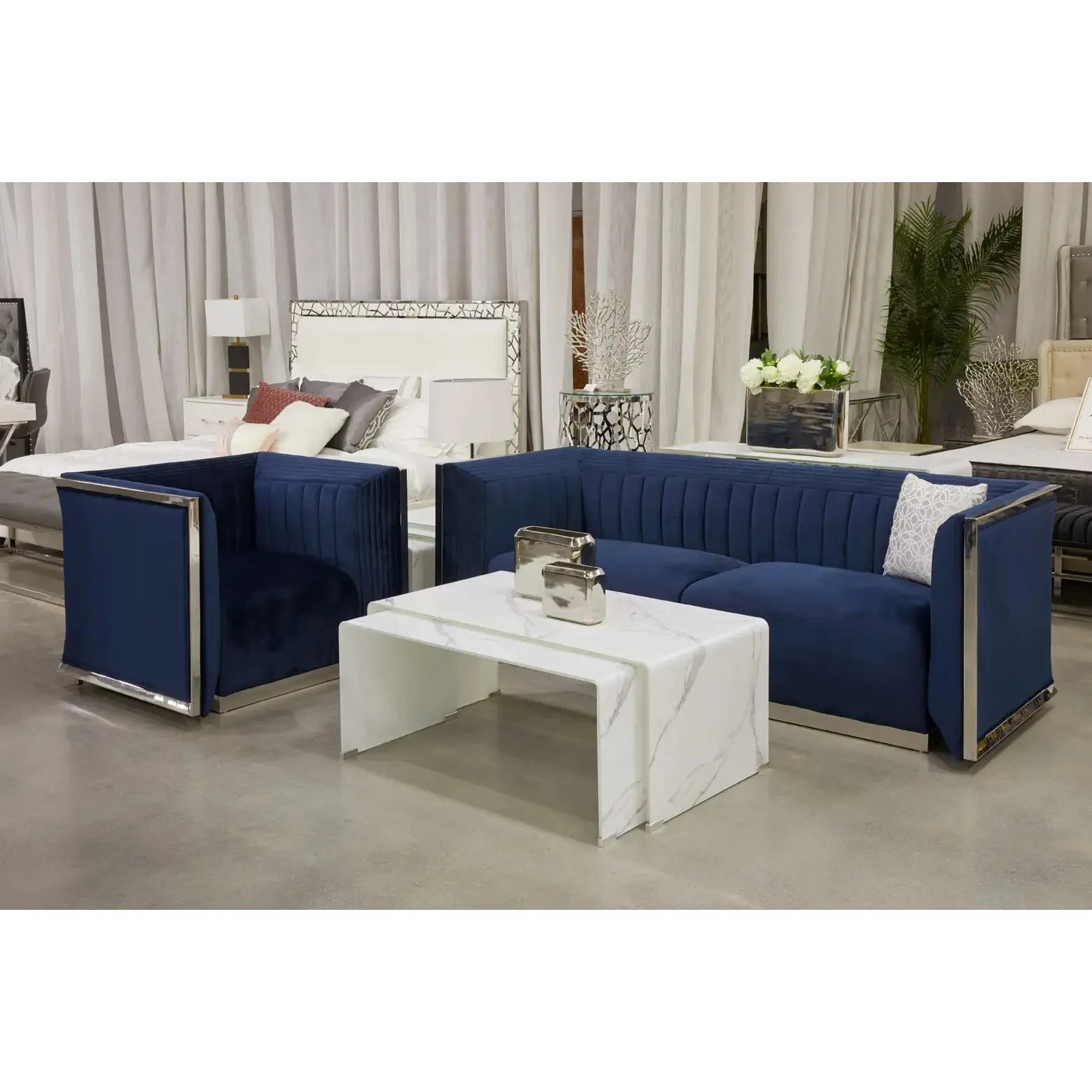 Such a marbleish appearance coffee table that combines beauty and practicality. The faux marble finish gives your living room a luxe look that’s ideal for modern living rooms in need of bot
