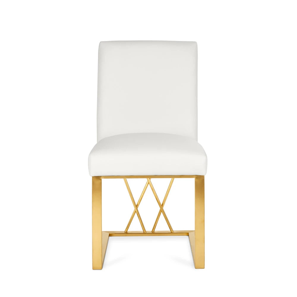 The Martini Gold Chair is the perfect fusion of beautiful style and ultimate comfort. With smooth , white leather upholstery and a polished gold metal frame, this chair offers so much more than just good looks.