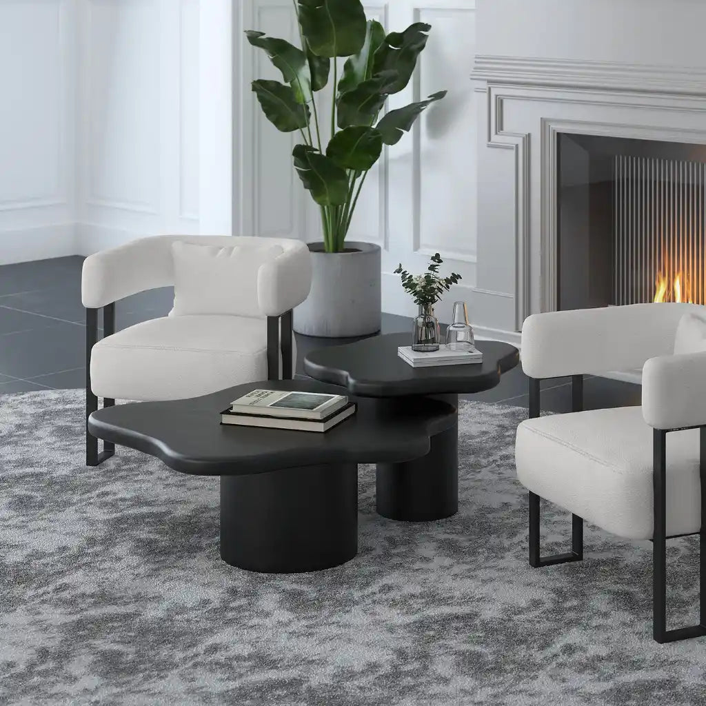 Mayal 2-Piece Coffee Table Set With Solid Mango Wood, Modern Style