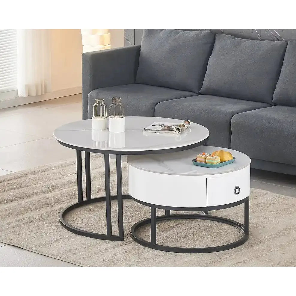 Need storage? The smaller table hides a built-in drawer with modern black hardware—perfect for stashing remotes, chargers, or coasters. The nesting style offers flexibility. Display them together for a layered look or separate them across your space.