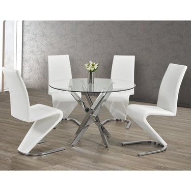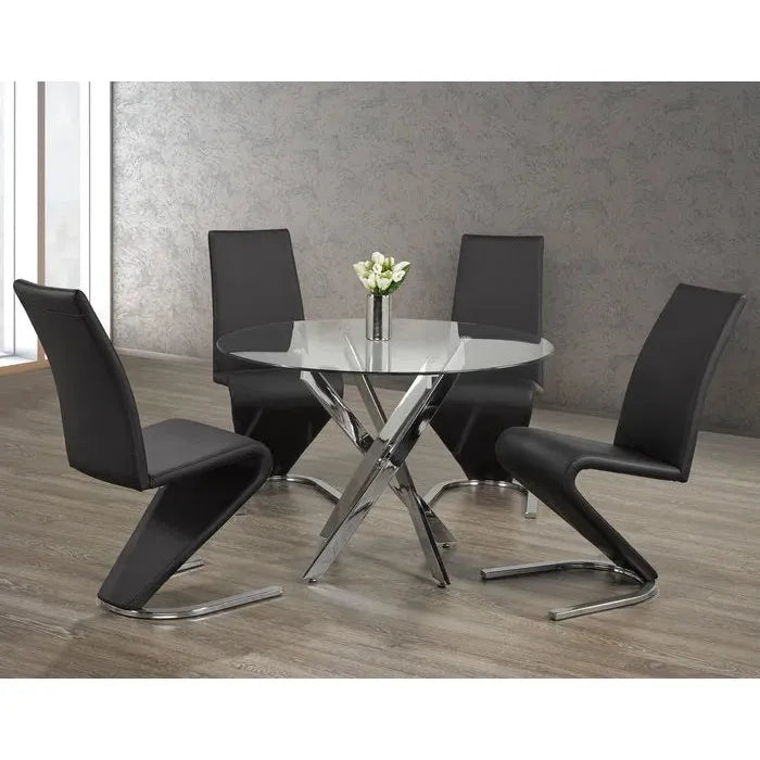 Home Modern Glass Dining Set for Four — Clear Table & Z‑Shape PU Chairs