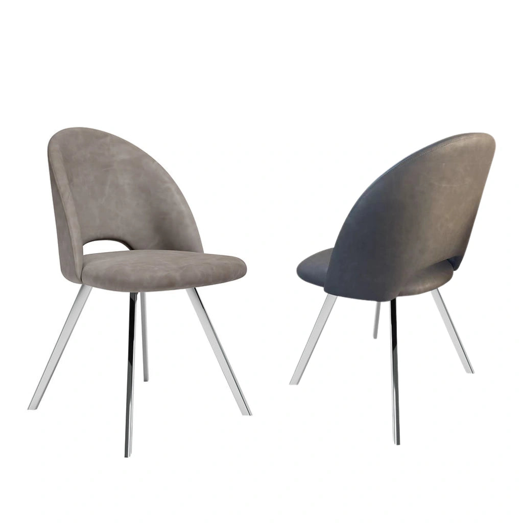 Modern Grey PU Dining Chairs Set of 2 With Stainless Steel Legs