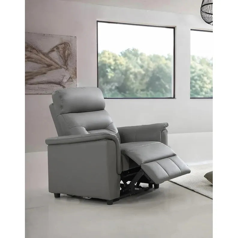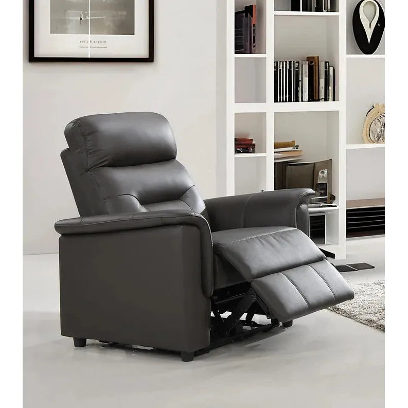 Modern Power Recliner Chair with USB – Light Grey Leather Match