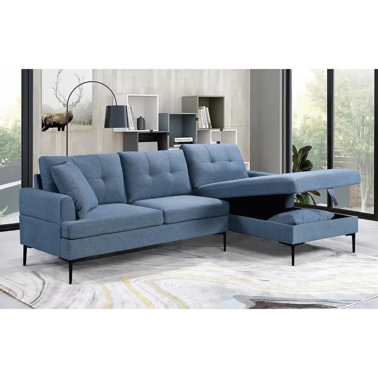 Blue Sectional Sofa with Storage & Chaise