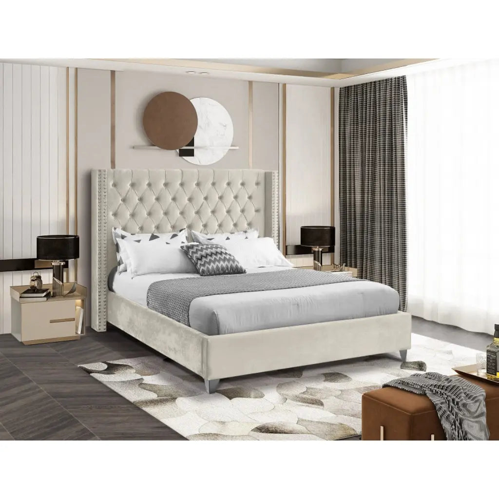 Beige Velvet  Platform Bed with Tufted Headboard Beige Velvet Platform Bed with Tufted Headboard