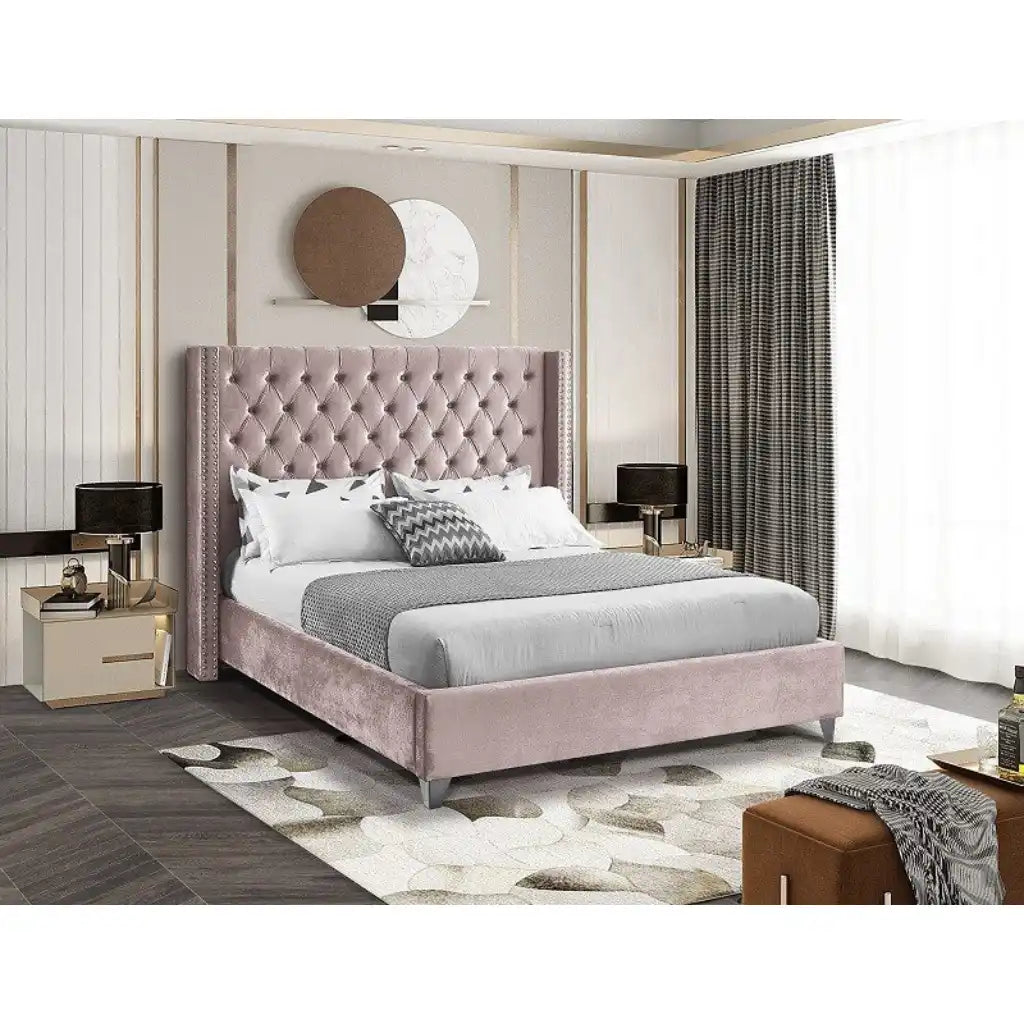 • Dusty Pink Velvet Upholstery – Adds a warm, elegant touch to any bedroom.