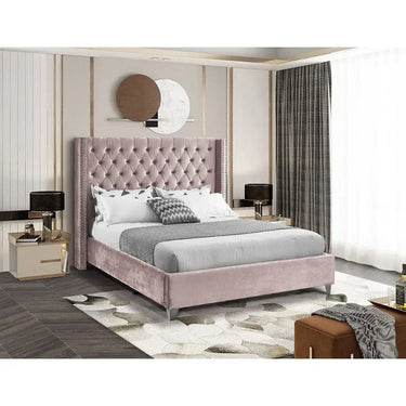 The dusty pink velvet instantly warms up your space. It feels rich and inviting, the kind of bed that becomes the centrepiece of your bedroom. Deep button tufting and chrome nailhead trim give it a touch of glamour without going over the top. And those chrome legs? Sleek, modern, and built to last.