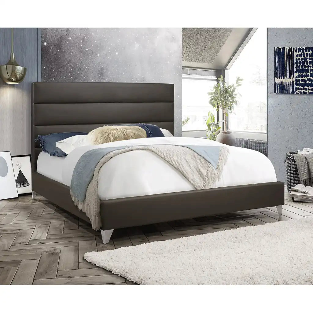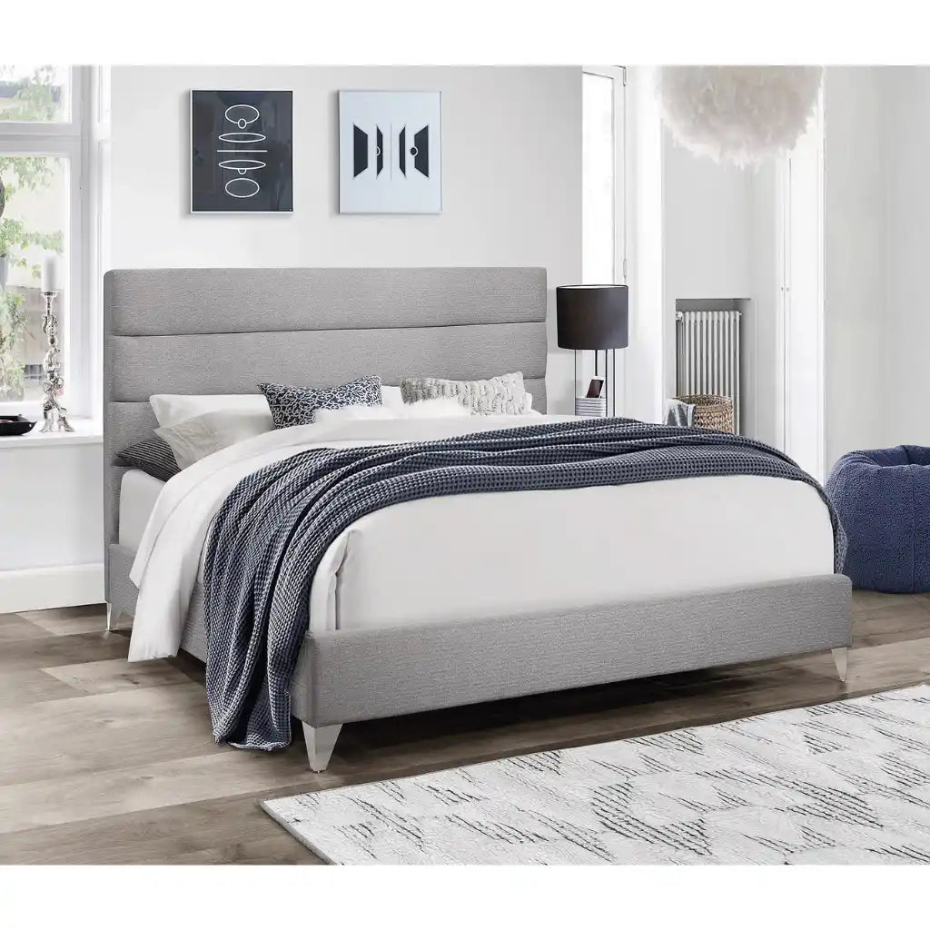 Queen Fabric Bed with Tufted Headboard & Chrome Legs