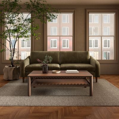 The Quinn sofa's classic, transitional frame is designed for versatility, harmoniously fitting into a variety of spaces. It stands on a foundation of durability and sustainable charm with a wood frame and legs. Wrapped in soft-touch fabrics, it offers an elevated feel, inviting touch, and undeniable comfort with its timeless design and tactile elegance.