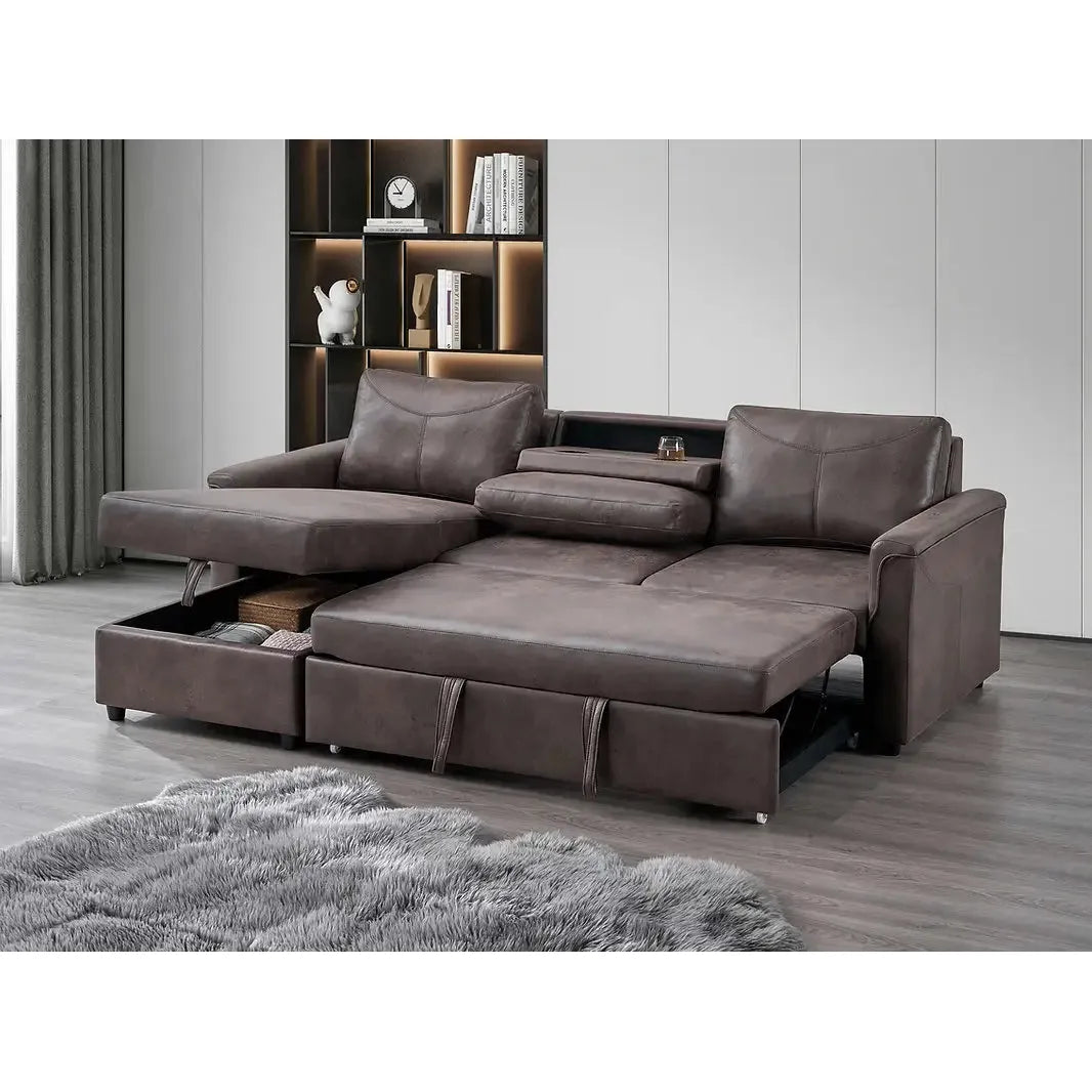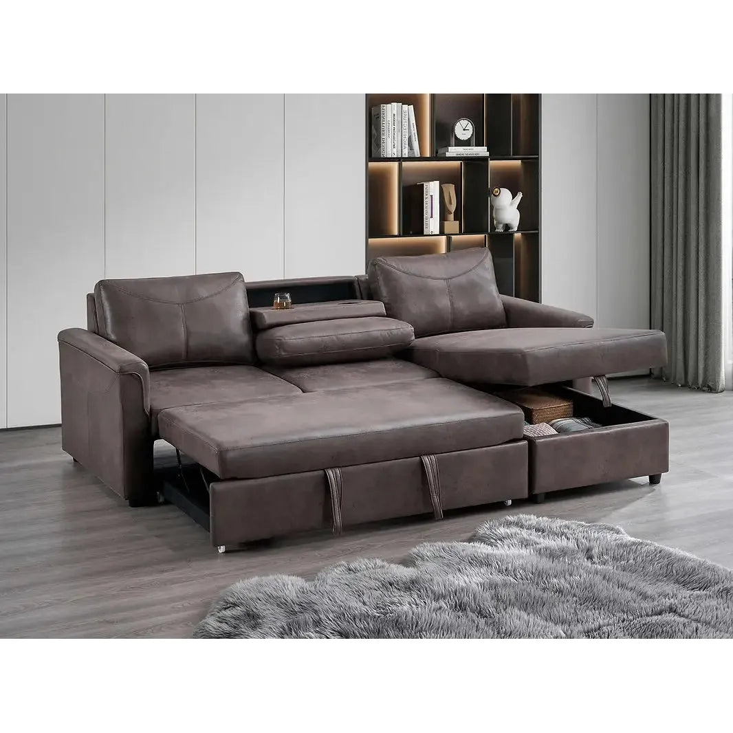 Right-Facing Sectional Sofa Bed – Storage, USB Ports, Cup Holders