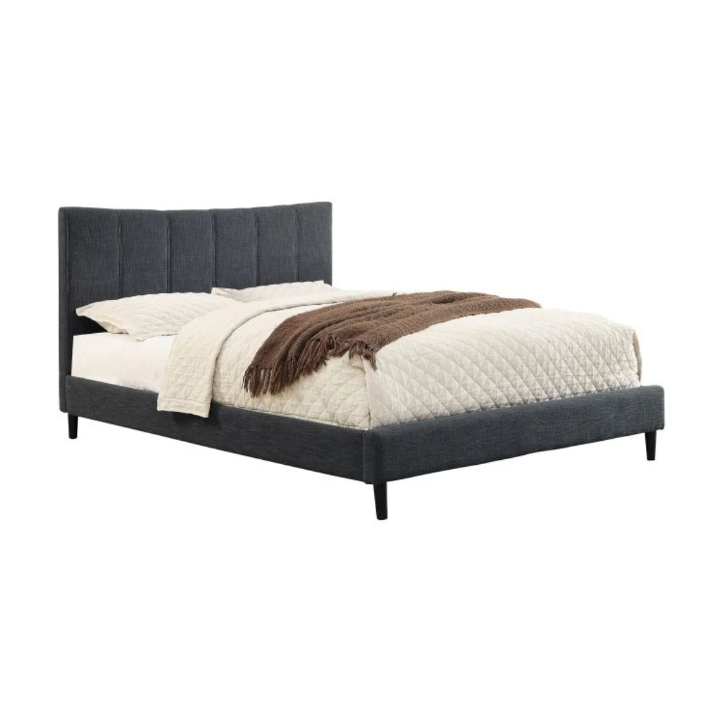 Rimo 78″ Grey Upholstered King Platform Bed With Linen-Look Headboard