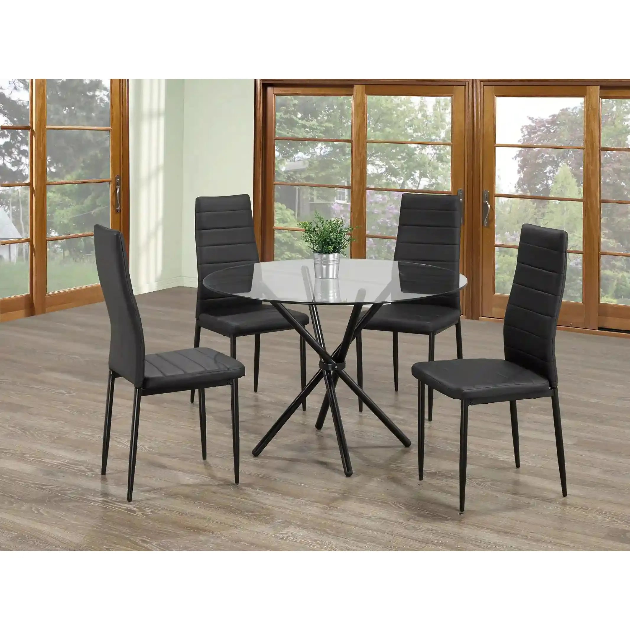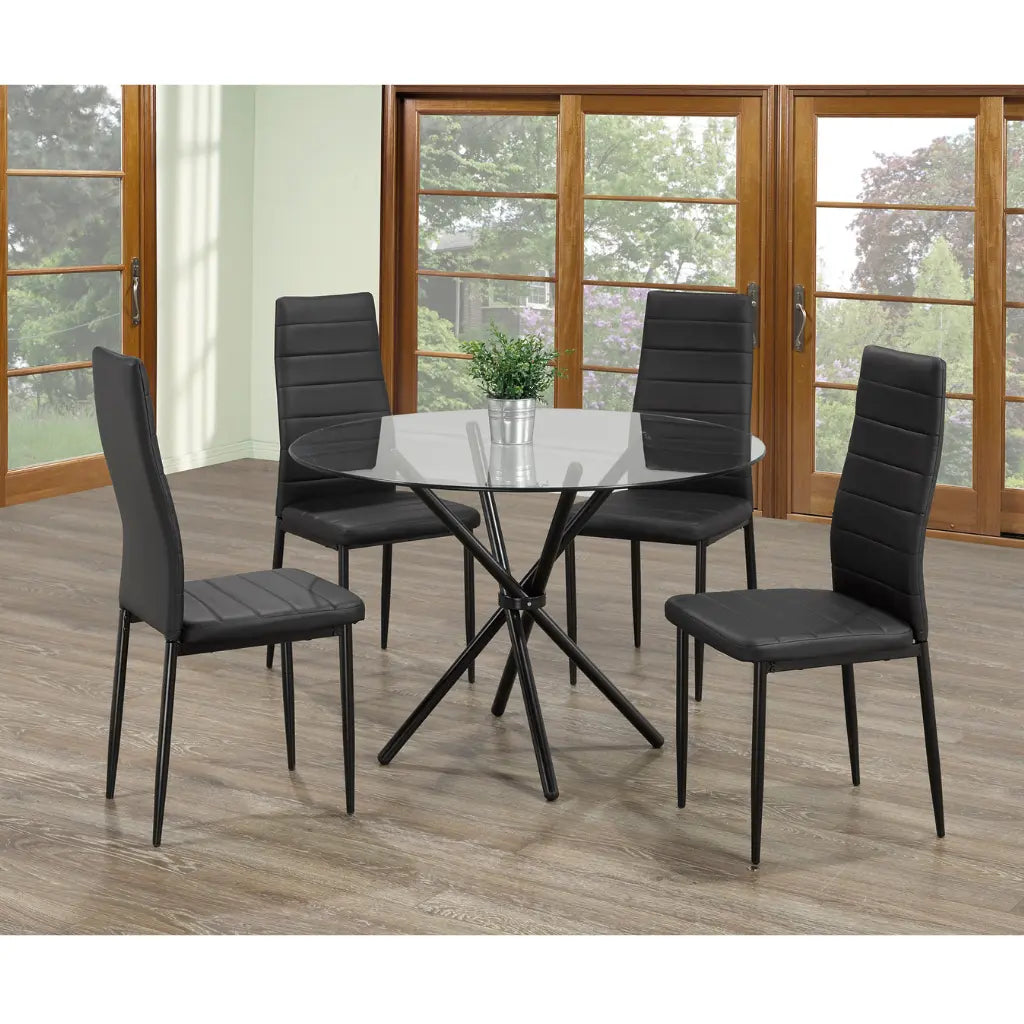 Round Glass Dining Set with Black Base & PU Cushion Chairs