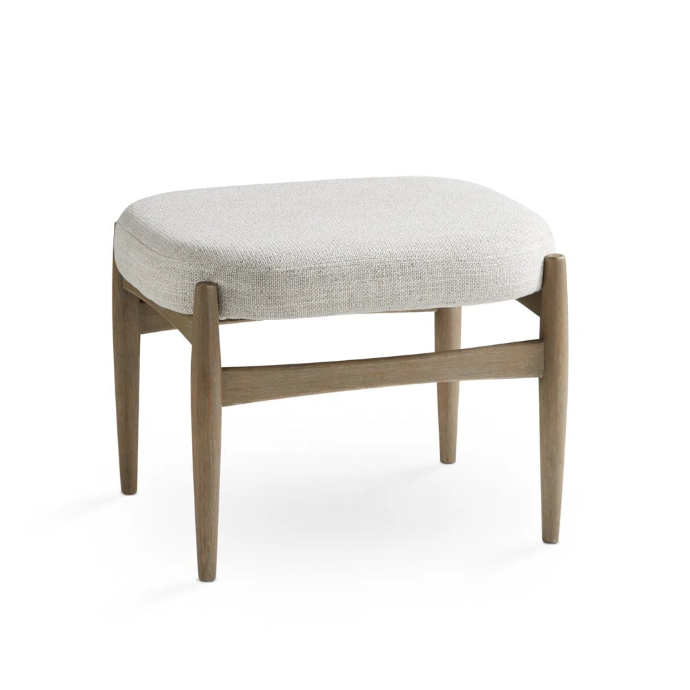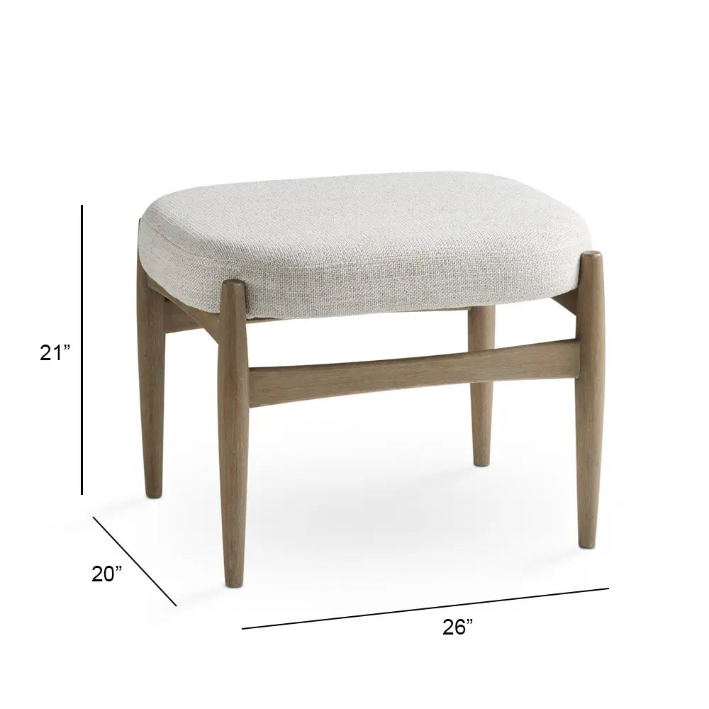 Salina Grey Linen Polyester Fabric Ottoman – Solid Wood Legs