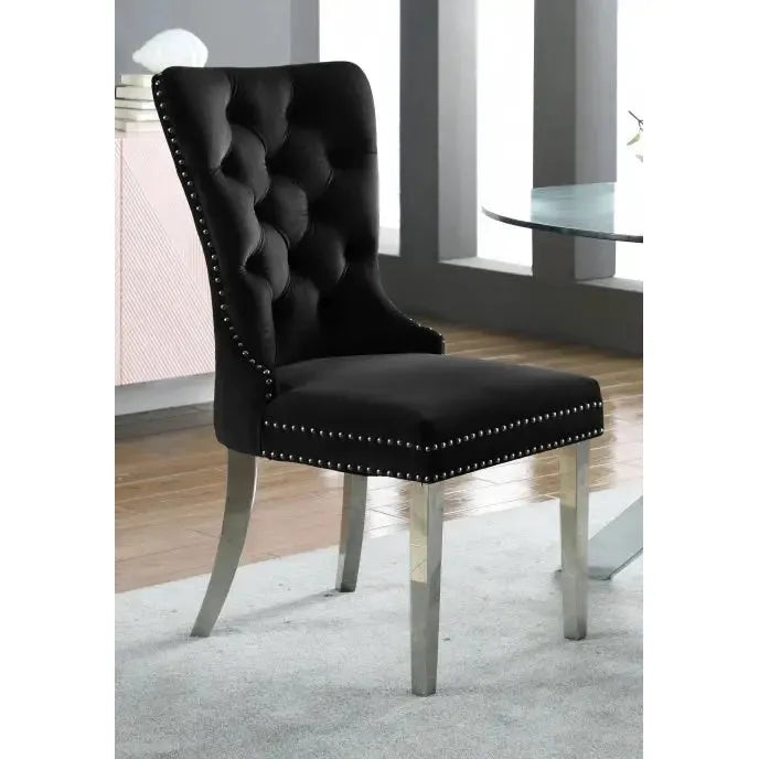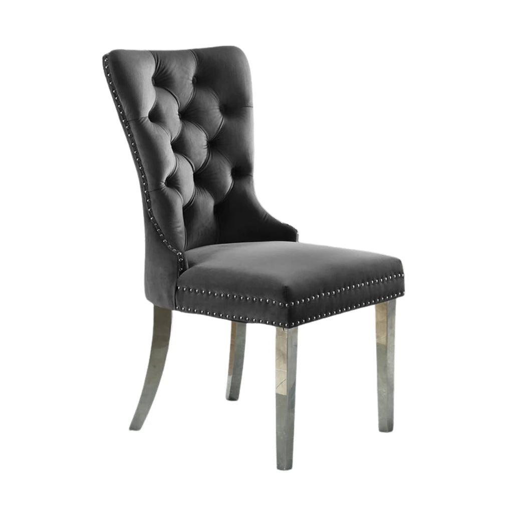 Set of 2 Velvet Accent Chairs with Chrome Knocker & Tufted Front