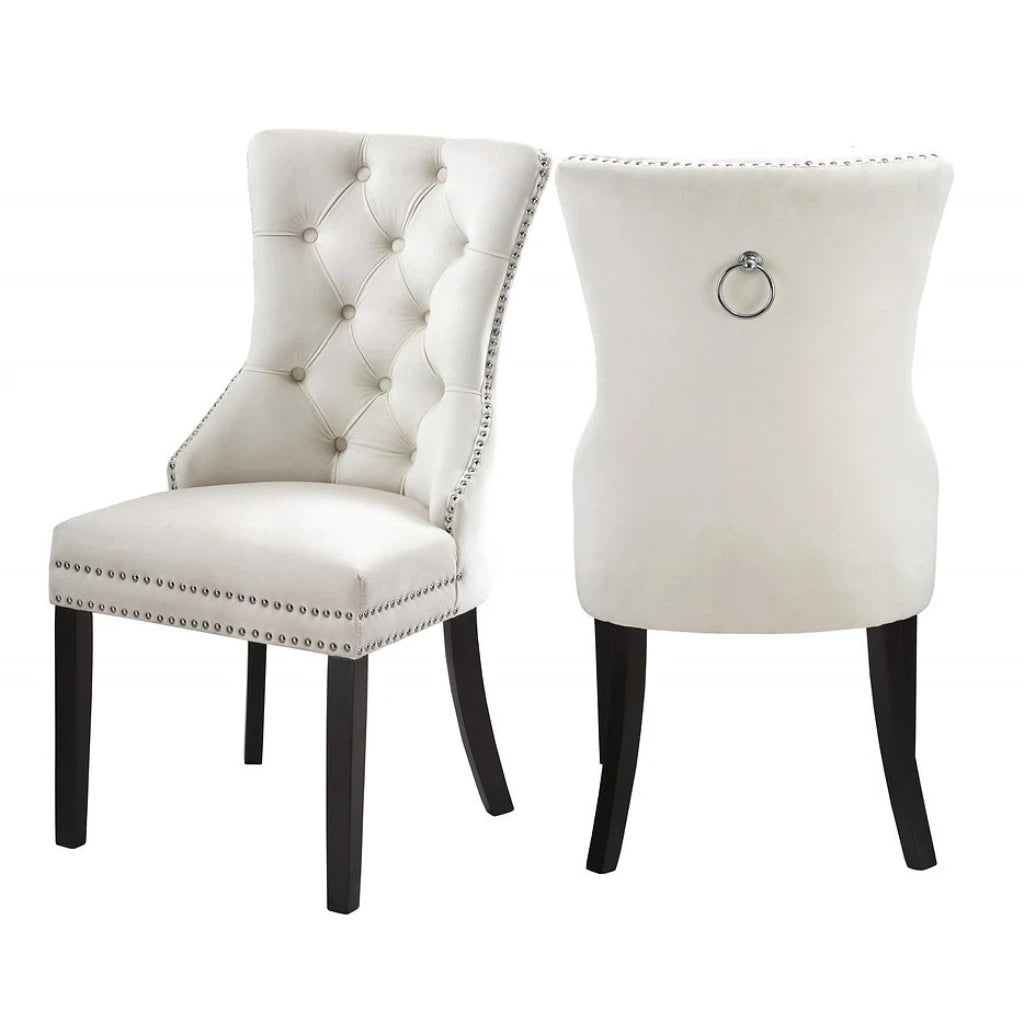 Looking to upgrade your dining space? This set of 2 velvet dining chairs brings style, softness, and class to any room—without trying too hard. Wrapped in plush velvet and available in Cream, Black, Grey, and Blue, these chairs are built to blend in beautifully—or stand out, if you want them to. Each chair features refined nailhead trim and a modern silhouette that says chic without shouting. Feel the softness every time you sit. Enjoy the support thanks to the tall, gently curved back.