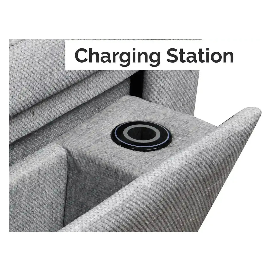 Gray sofa with a wireless charging pad Gray sofa with a wireless charging pad