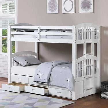 White bunk bed with storage drawers