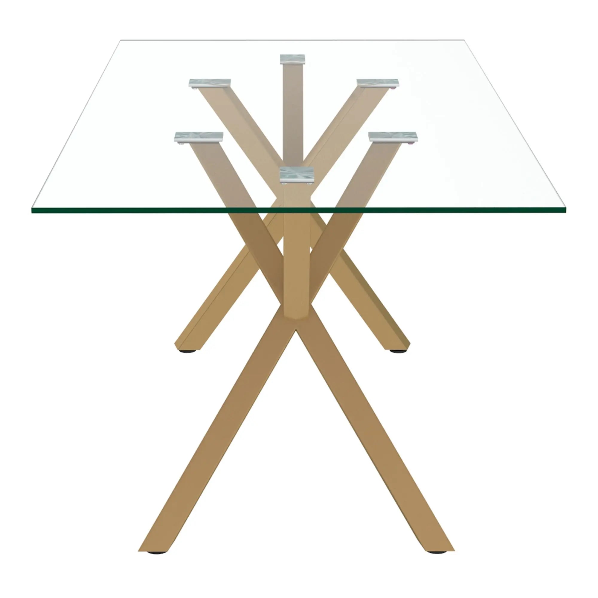 The Stark Modern Glass Dining Table will make every meal special. This gorgeous 71-inch rectangular table combines a bold, geometric metal base with a 10mm tempered glass top for a contemporary style that is both aesthetically pleasing and useful.