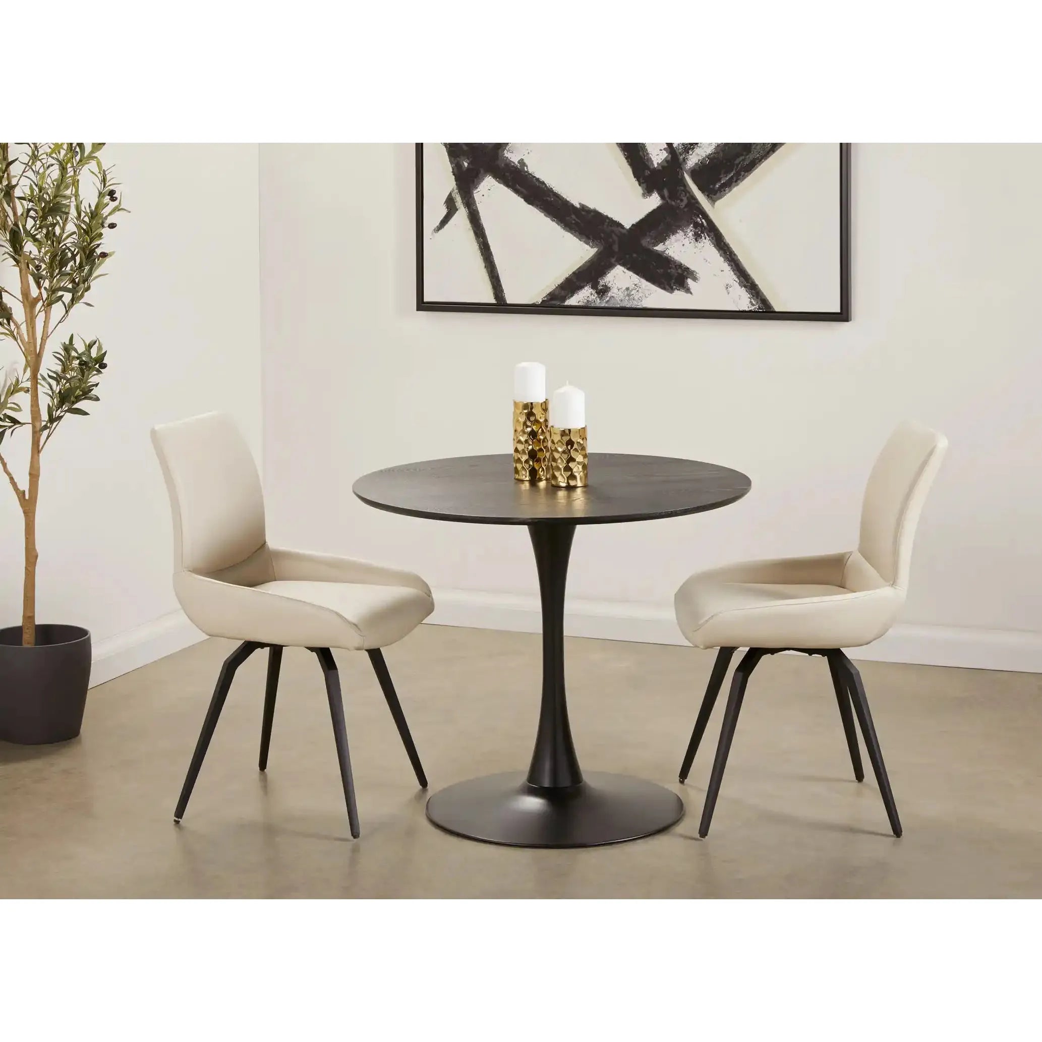 Tulip Ash Veneer Dining Table – Sleek 36" Table with Black Metal Legs