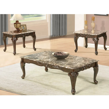 Walnut Marble Coffee Table Set – Coffee + 2 End Tables