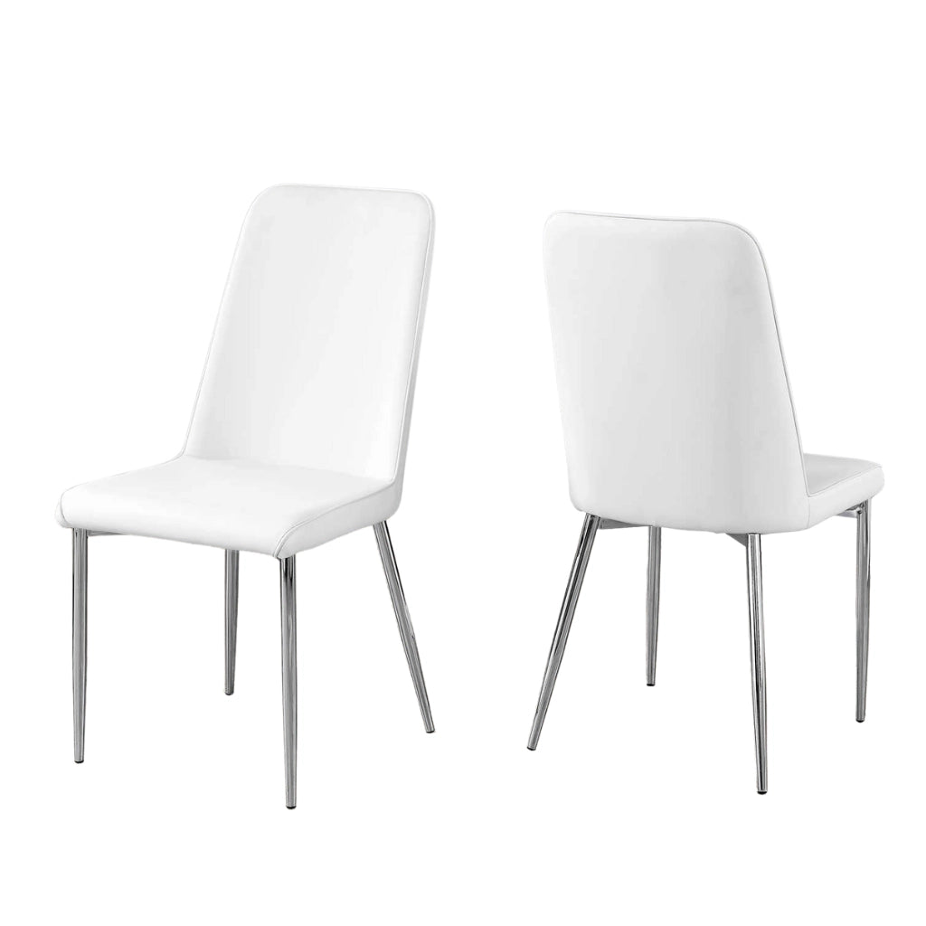 White Leather-Look Dining Chairs – 37"H with Chrome Legs - Set Of 2