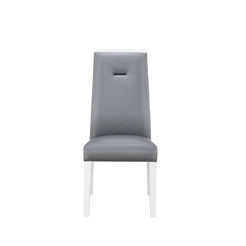 Now to the chairs—because comfort matters. Upholstered in smooth grey PU with high-density cushioning, they’re as cozy as they are elegant. And those high-gloss white legs? They tie the whole look together.