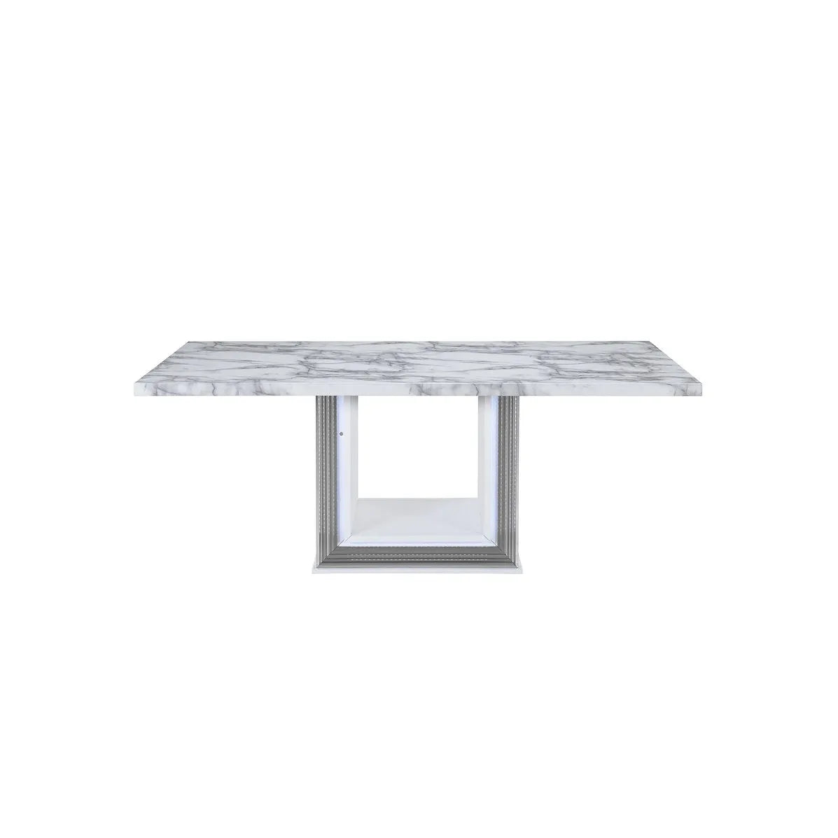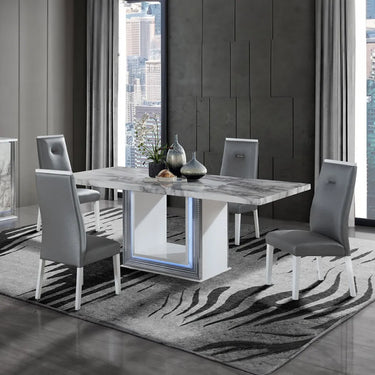 YLIME 7-Piece White Marble Dining Set with LED Table