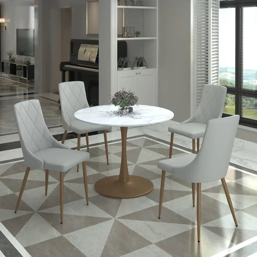 Zilo/Antoine Small Round 5pc Dining Set With Faux Marble Gold Table